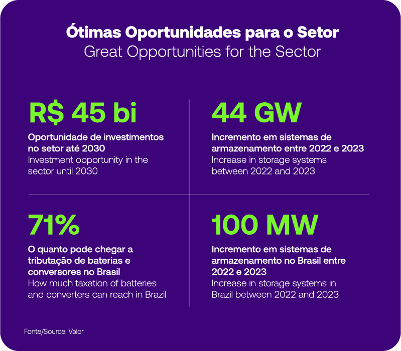 According to a projection by the ONS (National Electric System Operator), electricity consumption is expected to grow 15% by 2028, reaching a maximum load of 111GW. Installed capacity could reach 281GW by 2027, driven by intermittent renewable sources. In this scenario, the Brazilian electricity sector demands sufficient flexibility from other non-intermittent sources to maintain system security, with batteries being a viable solution.